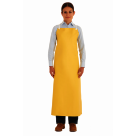 - hese heavy duty aprons feature 20mil die cut PVC reinforced with a nylon backing and offer tough, durable and flexible protection from chemical splashes, grease and grime. PVC construction offers superior flexibility, even at cold temperatures. 2-piece 48 inch ties and sealed grommets provide a durable, consistent and adjustable fit on a wide range of sizes.